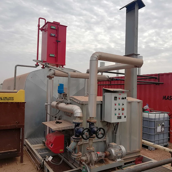 - No. 1 thermal oil boiler, type MG30, power 300.000 kcal/h for the supply of thermal oil to the above-mentioned TH40. The boiler’s design was revised to shorten its dimensions and allow easier installation on the skid
