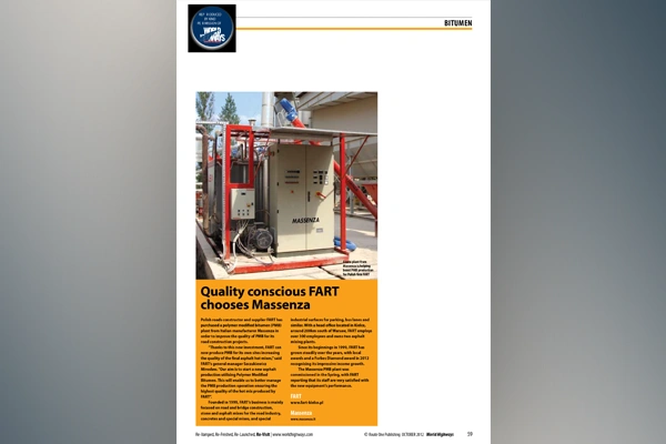 The “Quality conscious FART chooses Massenza” article, published in the “World Highways” magazine (October 2012).