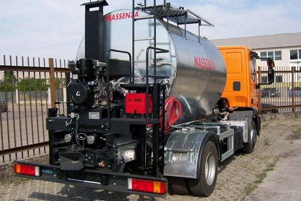 • Installazione anteriore – dalla parte opposta rispetto alla barra spruzzatrice – di motore diesel, pompa bitume e caldaia.